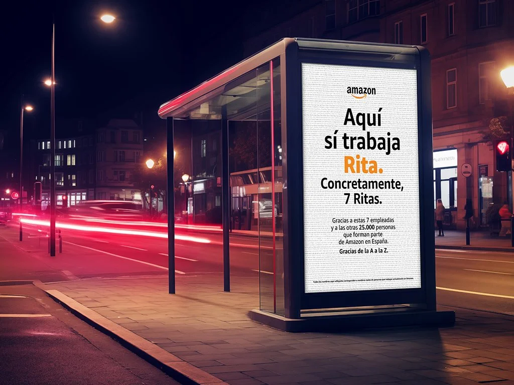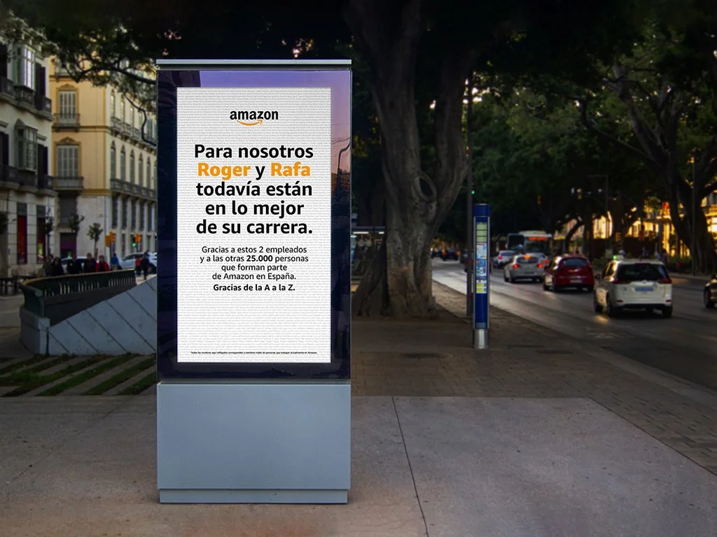 Amazon España nos hizo un pedido: comunicar que son más de 25k de empleados. Así que les pedimos un dato, los nombres de todos ellos. Y los hicimos protagonistas de la campaña. Porque si hay algo que hace grandes a las empresas, son sus trabajadores.